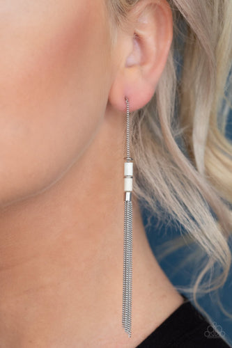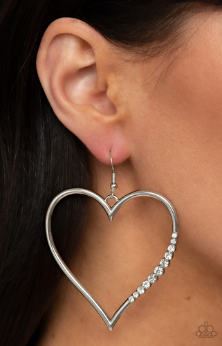 Retro Reverberation Silver Hematite Rhinestone Hoop Earrings